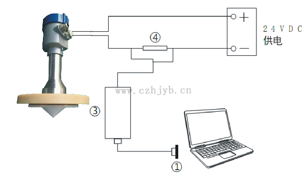 (4~20) mA/HART(四線制) 供電電源和電流信號分開,各自分別使用一根兩芯屏蔽電纜線。具體供電電壓范圍參見技術數據。